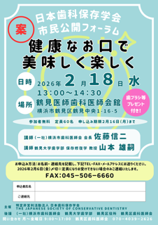 特定非営利活動法人日本歯科保存学会では、高度化する歯科医療の進歩を広く社会一般の方々へ周知し、さらにその恩恵を還元するための事業の一環として、「市民公開フォーラム」を年2回各地で開催しています。